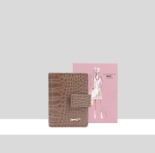-36% Off £39.00Original price was: £39.00.£25.00Current price is: £25.00.This sleek leather card holder, crafted from premium croc-embossed leather, combines sophistication with practicality. Secured by a sturdy tab, it ensures your cards stay safe while offering easy access. The elegant metal logo pin on the front adds a refined touch, making it perfect for travel, business, or a thoughtful small gift.