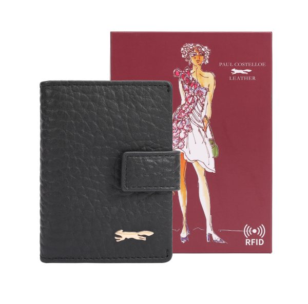 - 41 % Off £39.00Original price was: £39.00.£23.00Current price is: £23.00.This sleek leather card holder, crafted from soft pebbled leather, combines sophistication with practicality. With easy plastic sleeves and secured by a sturdy tab, it ensures your cards stay safe and compact while offering easy access. The elegant metal logo pin on the front adds a refined touch, making it perfect for travel, business, or a thoughtful small gift. D:1cm W:8.5cm H:10cm
