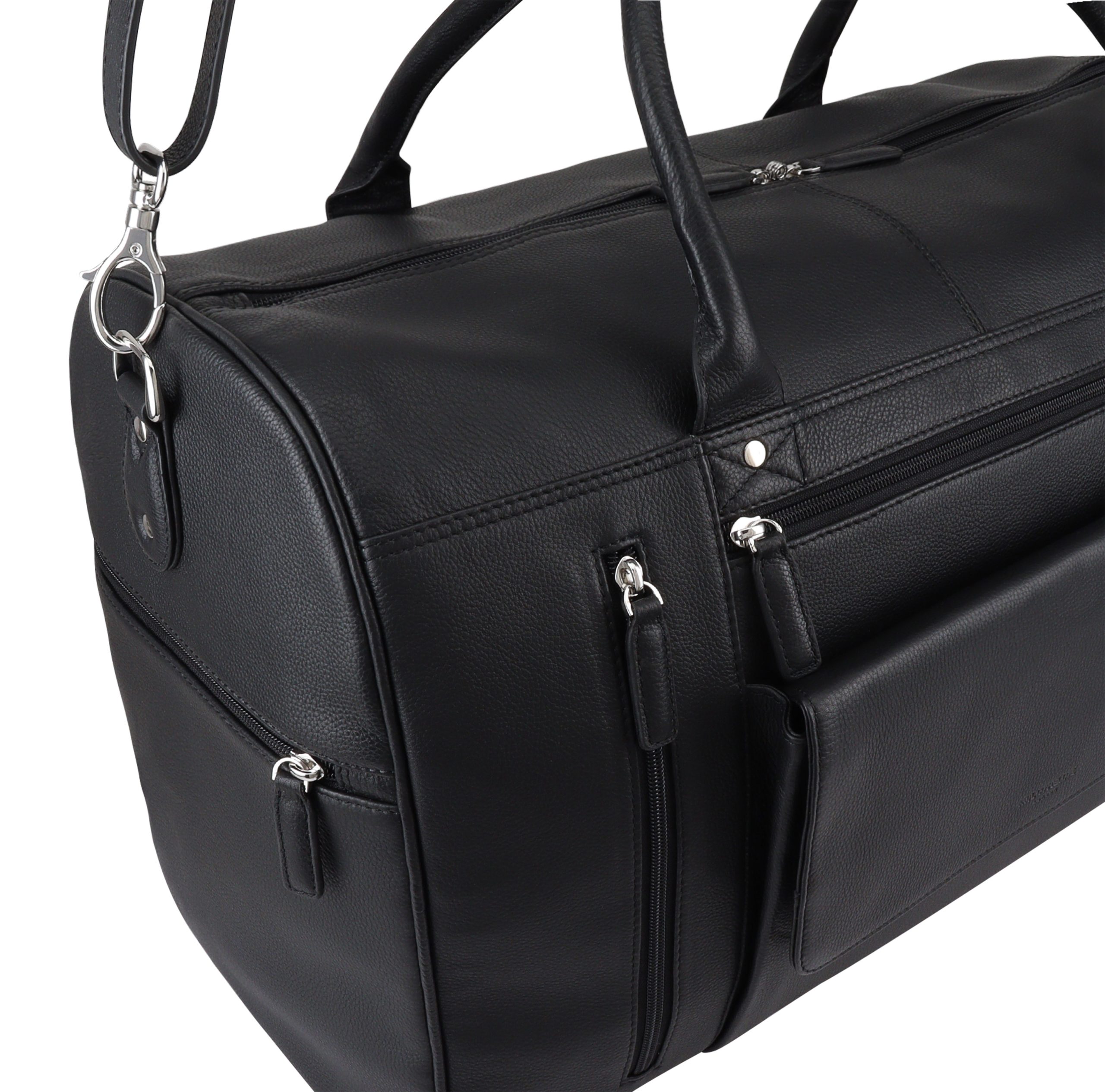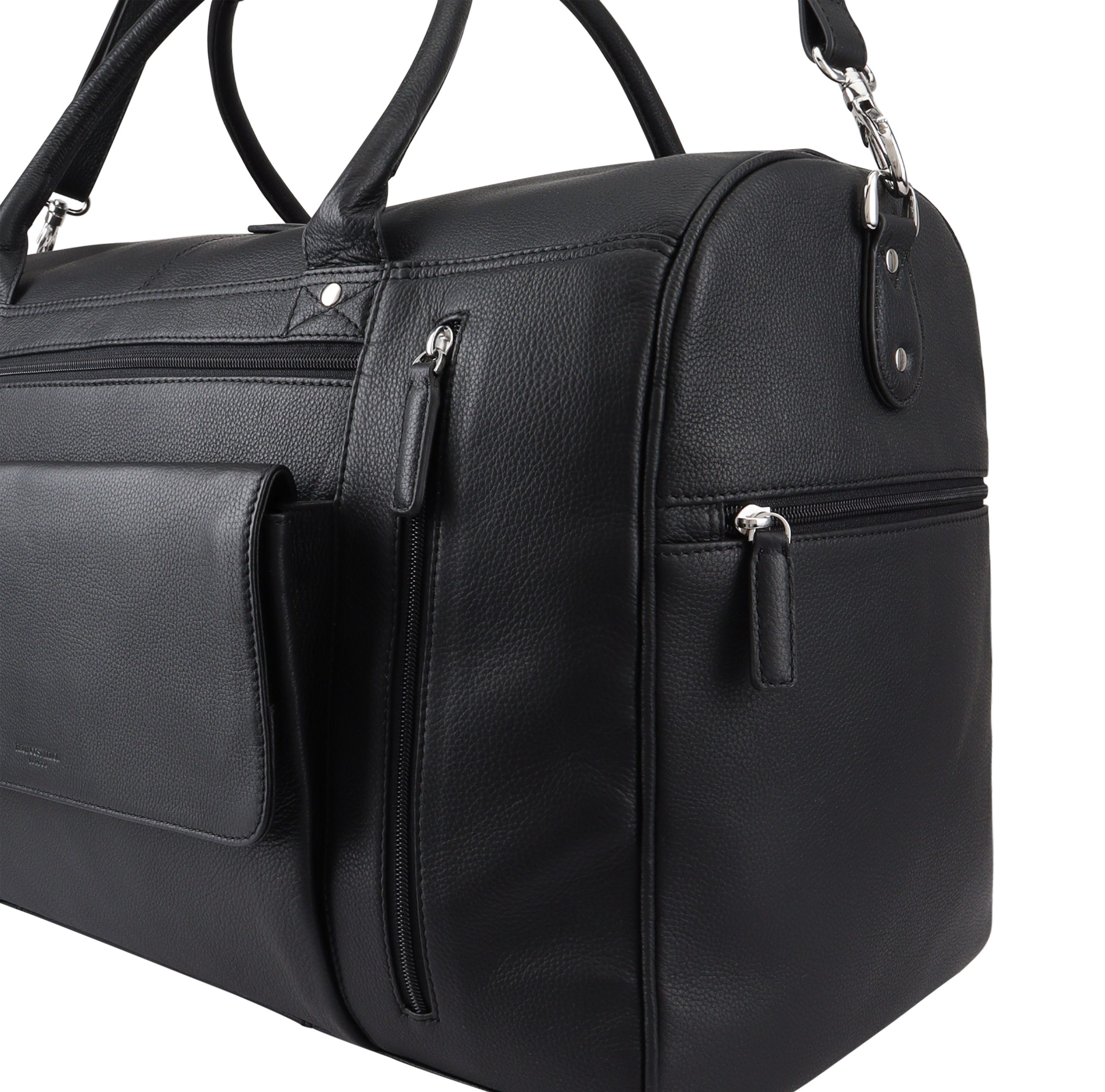 Paul Costelloe Bentley Holdall Bag exudes sophistication and class. Its sleek black exterior is complemented by a spacious interior, making it an ideal choice for business trips, weekend getaways, or daily use. The bags interior includes a large main compartment and smaller pockets, perfect for organising your belongings.