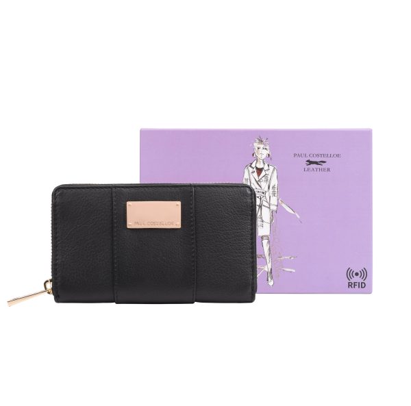 This chic leather zip-around purse, embellished with eye-catching studs along the front and back center panels, combines style and practicality. It boasts multiple card slots and note sections inside, providing ample space for all your essentials while keeping them neatly organized and securely enclosed. Perfect for those who appreciate a blend of elegance and functionality in their accessories.