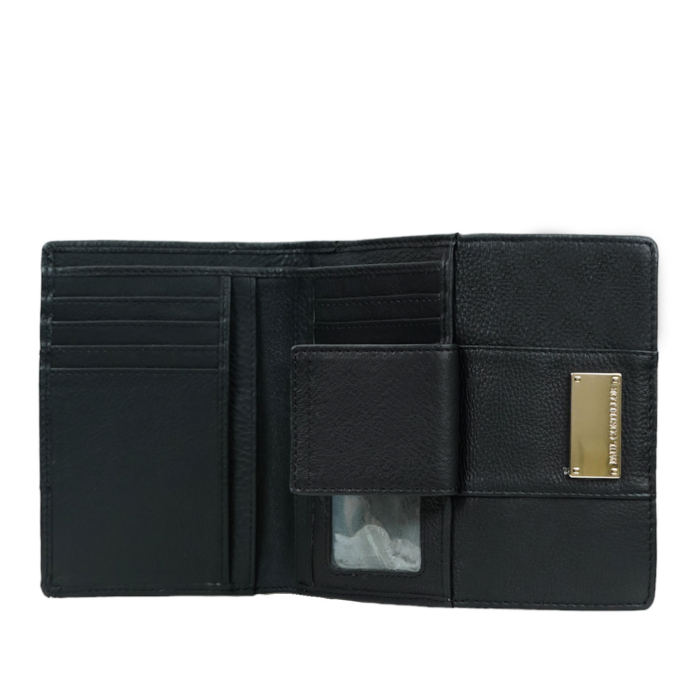 Designed in soft grained leather, this Calix purse opens to reveal plenty of card slots, rear flap coin section with zip. Decorated with the brands logo plate. Fits neatly into everyday bag.