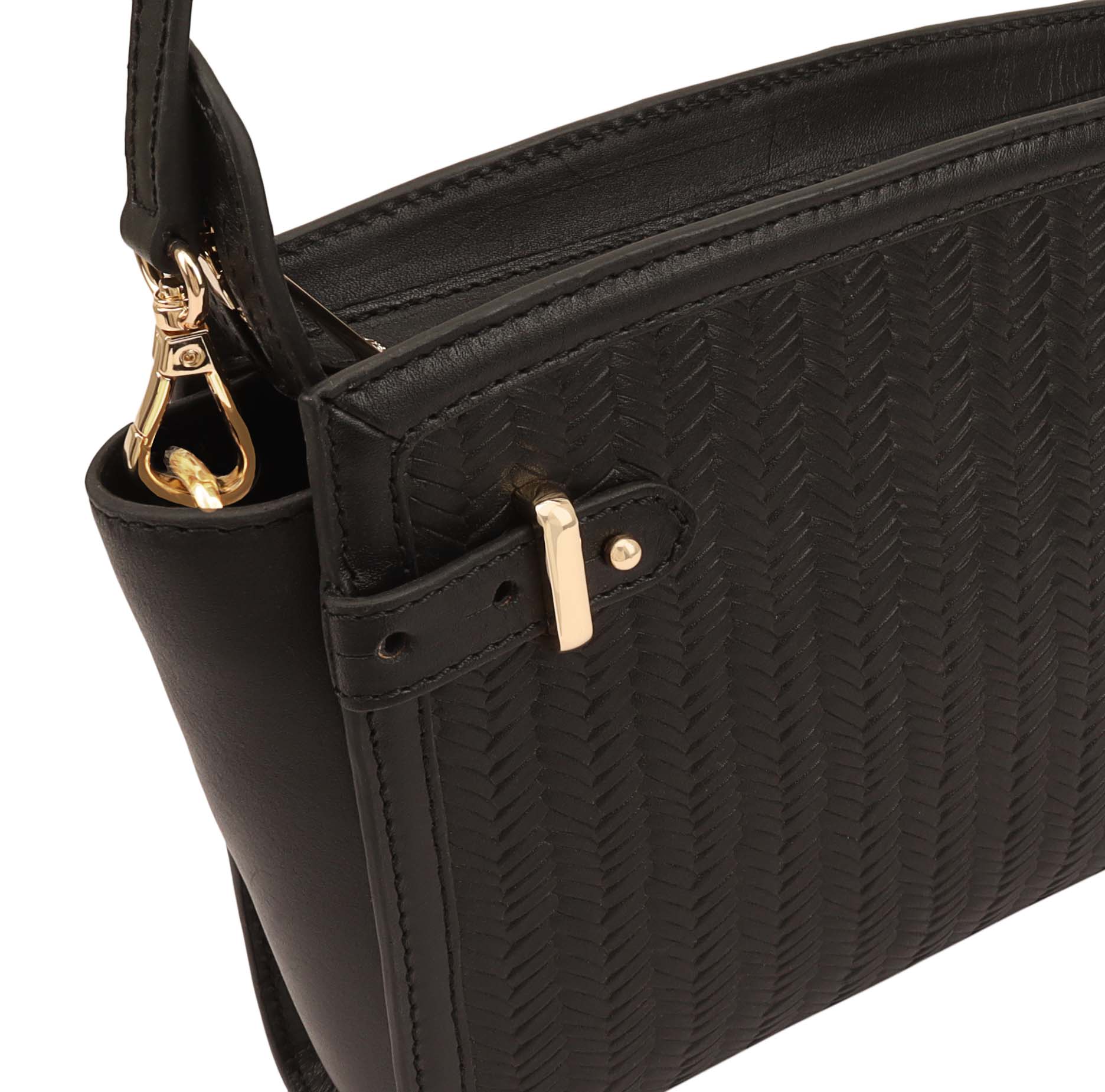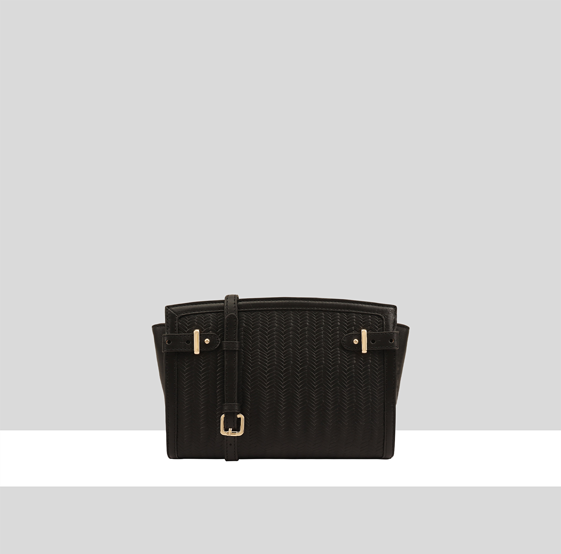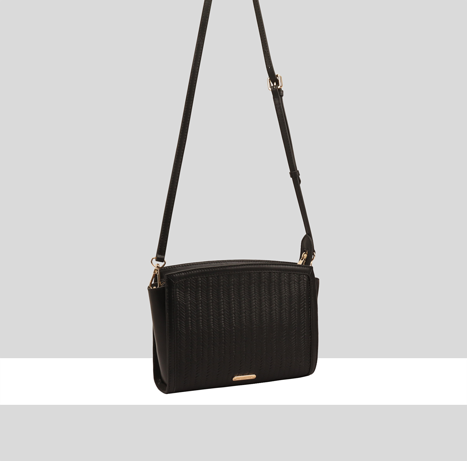 MANJRA a stylish and versatile leather crossbody bag designed for both functionality and fashion. This sleek accessory features a unique weave print embossed leather exterior, exuding a touch of exotic allure. The top zip ensures secure closure, while the interior boasts a zipped pocket for valuables and a dedicated phone pocket for easy access. The detachable and length-adjustable shoulder strap allows for seamless transformation, turning the bag into a chic clutch for a day-to-night transition. This crossbody bag seamlessly combines trendsetting design with practicality, making it a must-have addition to any fashion-forward wardrobe.