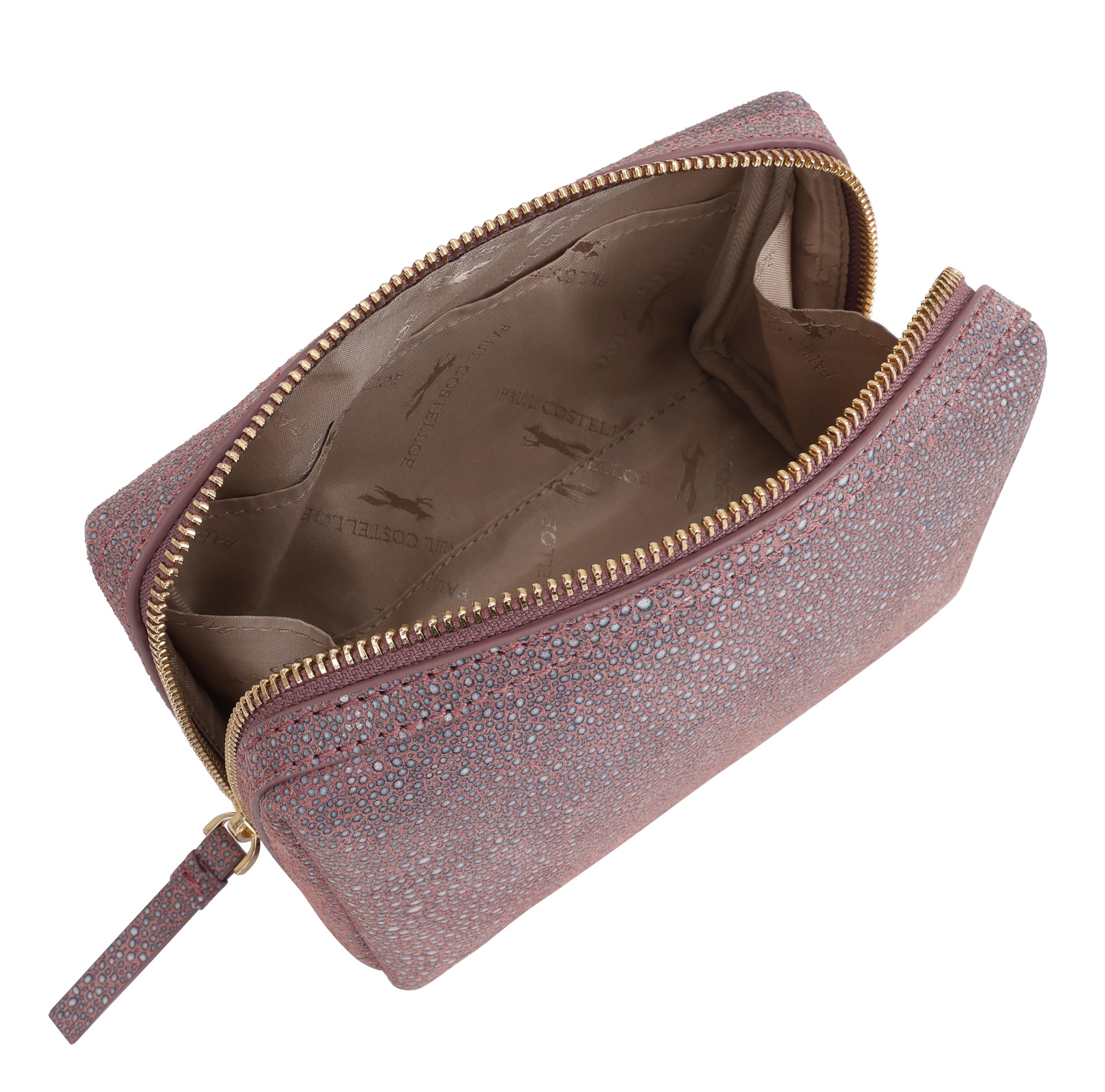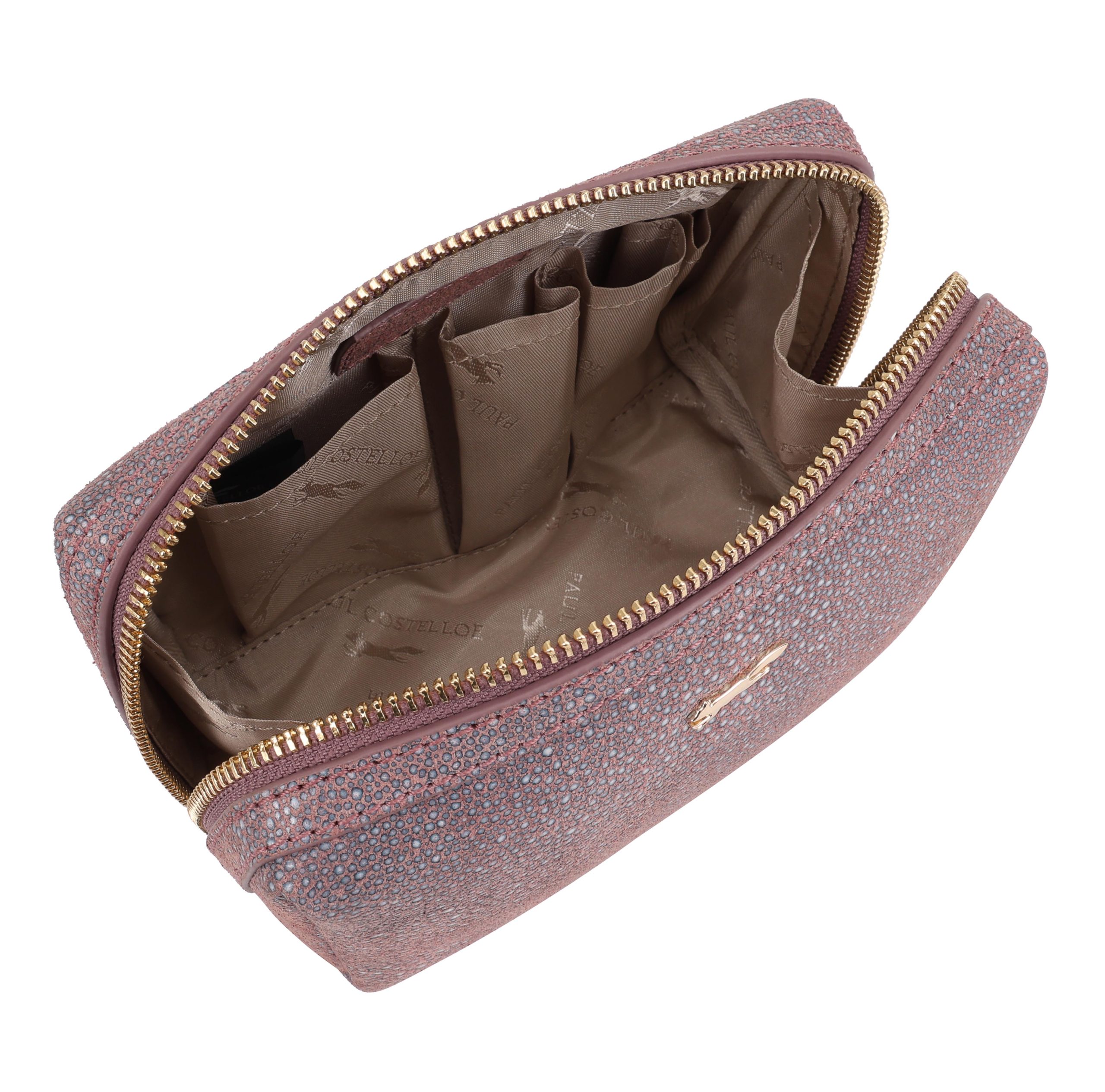 This square-shaped leather pouch, crafted from premium soft textured leather, features multiple interior pockets for organized storage of your travel essentials. Its sleek design is complemented by an elegant logo pin, adding a touch of sophistication. A perfect accessory for travel or a thoughtful gift for someone special.