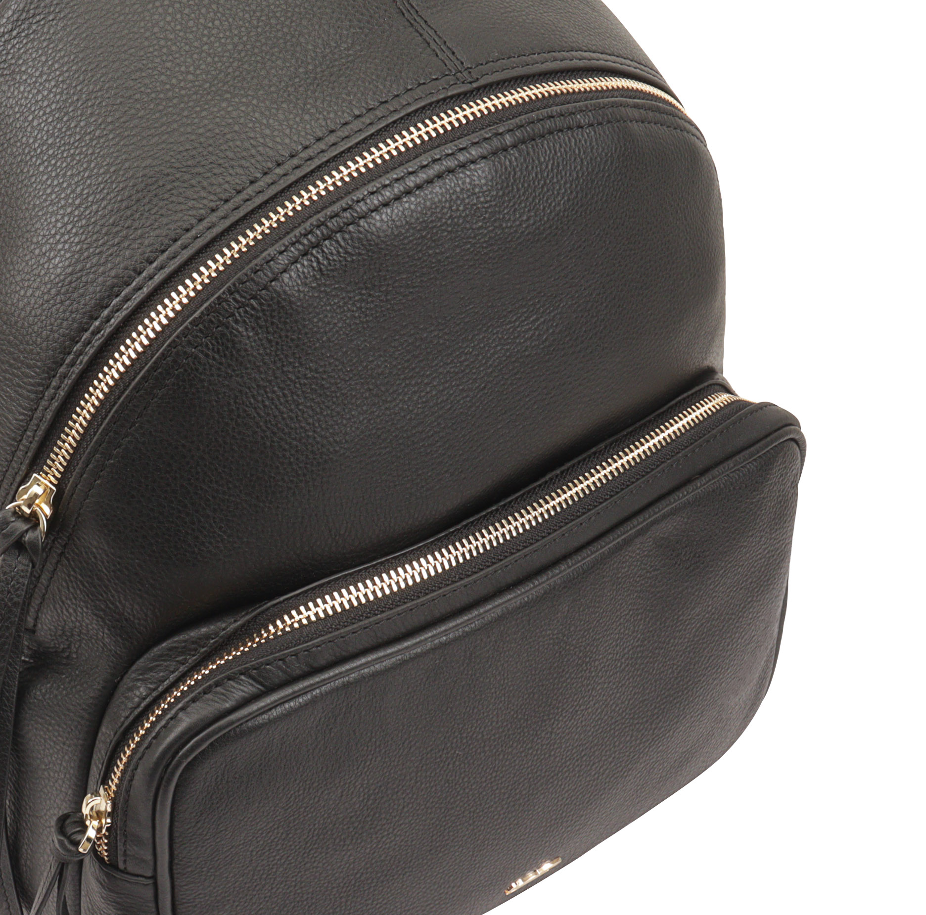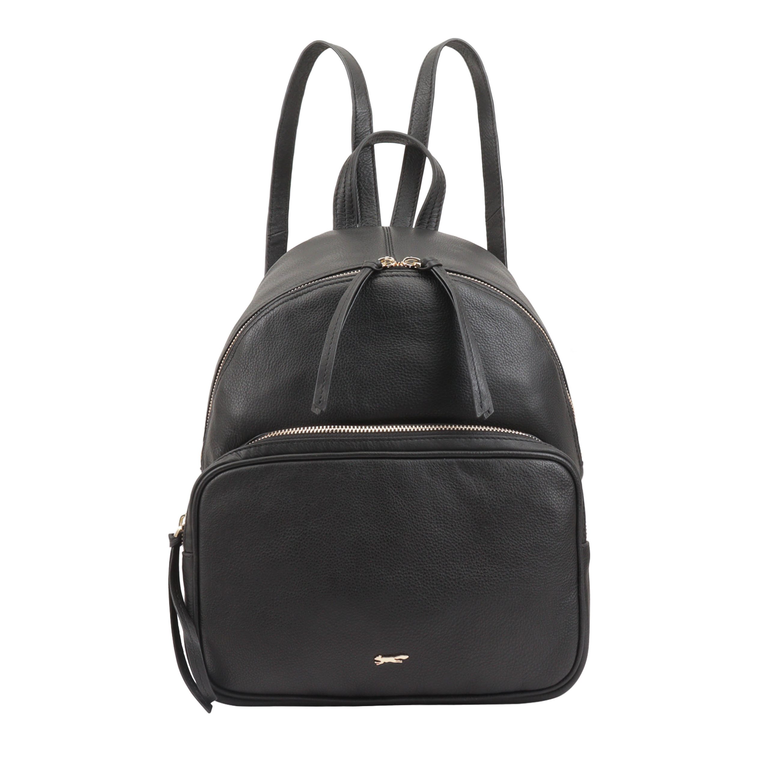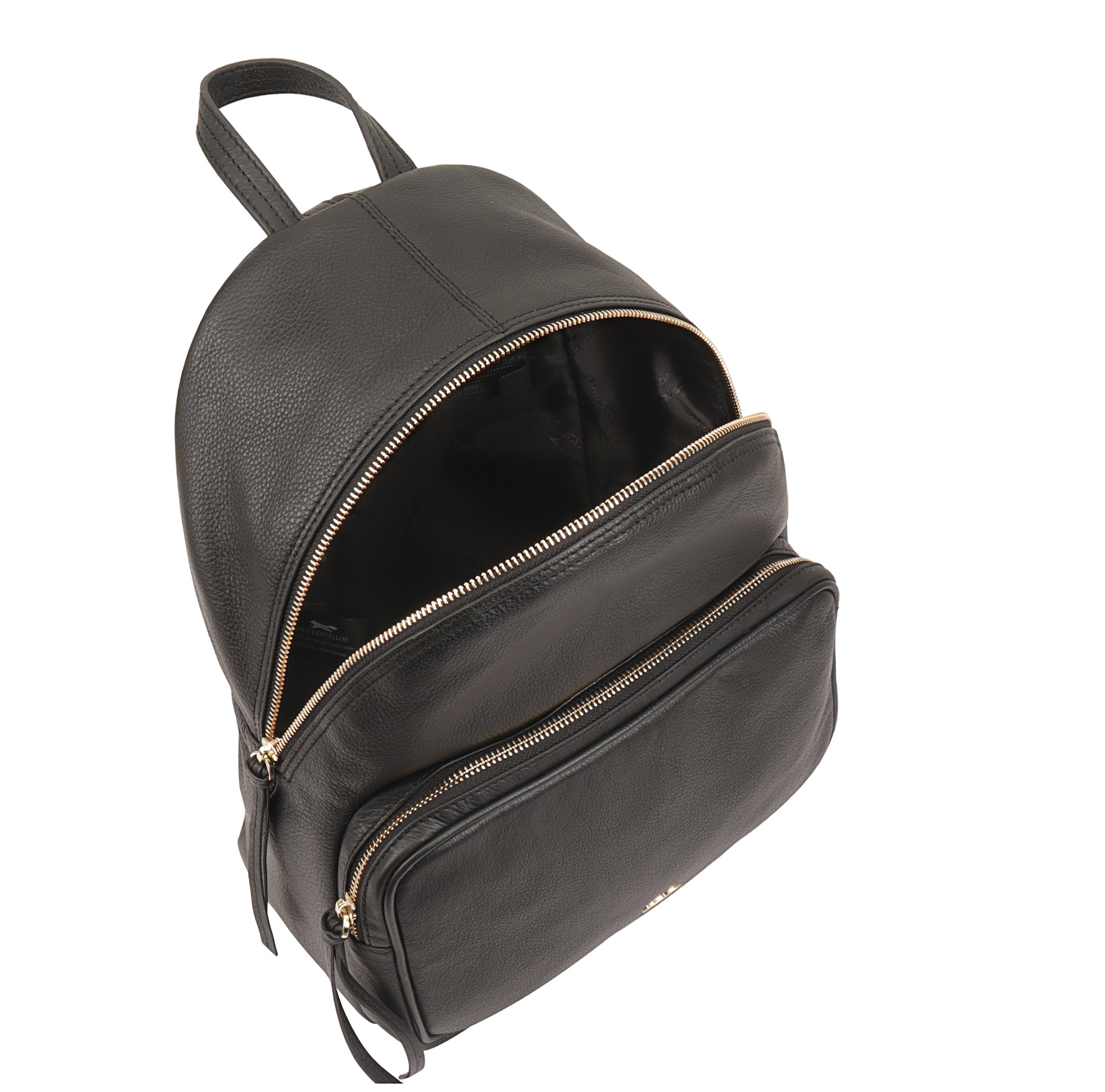 This design is accented with a gold zip detail on the front and metal zip with our Freddie on the main backpack pocket. With pockets inside to help keep you organised and keep valuables such as your phone safe and secure, there’s also a separate zipped pocket on the front. It is a roomy bag big enough to carry all your essentials. Made out of soft natural leather, this backpack is available in different colours. D:17cm W:27.5 cm H:34cm