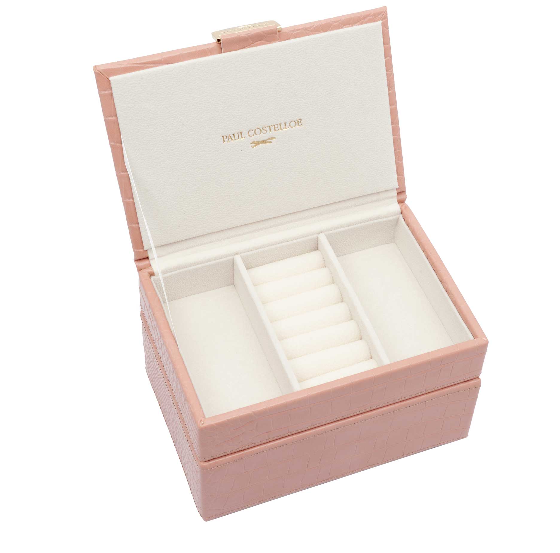 Keep your favourite jewellery in this stylish Paul Costelloe OLIVIA Jewellery Box . It is the perfect size for your everyday jewellery. This piece is designed with 2 layers and has a versatile storage for your precious rings, earrings and necklaces. The bottom layer is ideal for holding your watches and bracelets or the sentimental jewellery you like to keep hold of. It will keep your favourite chains tangle-free and your favourites stored neatly. A perfect gift for your loved ones!