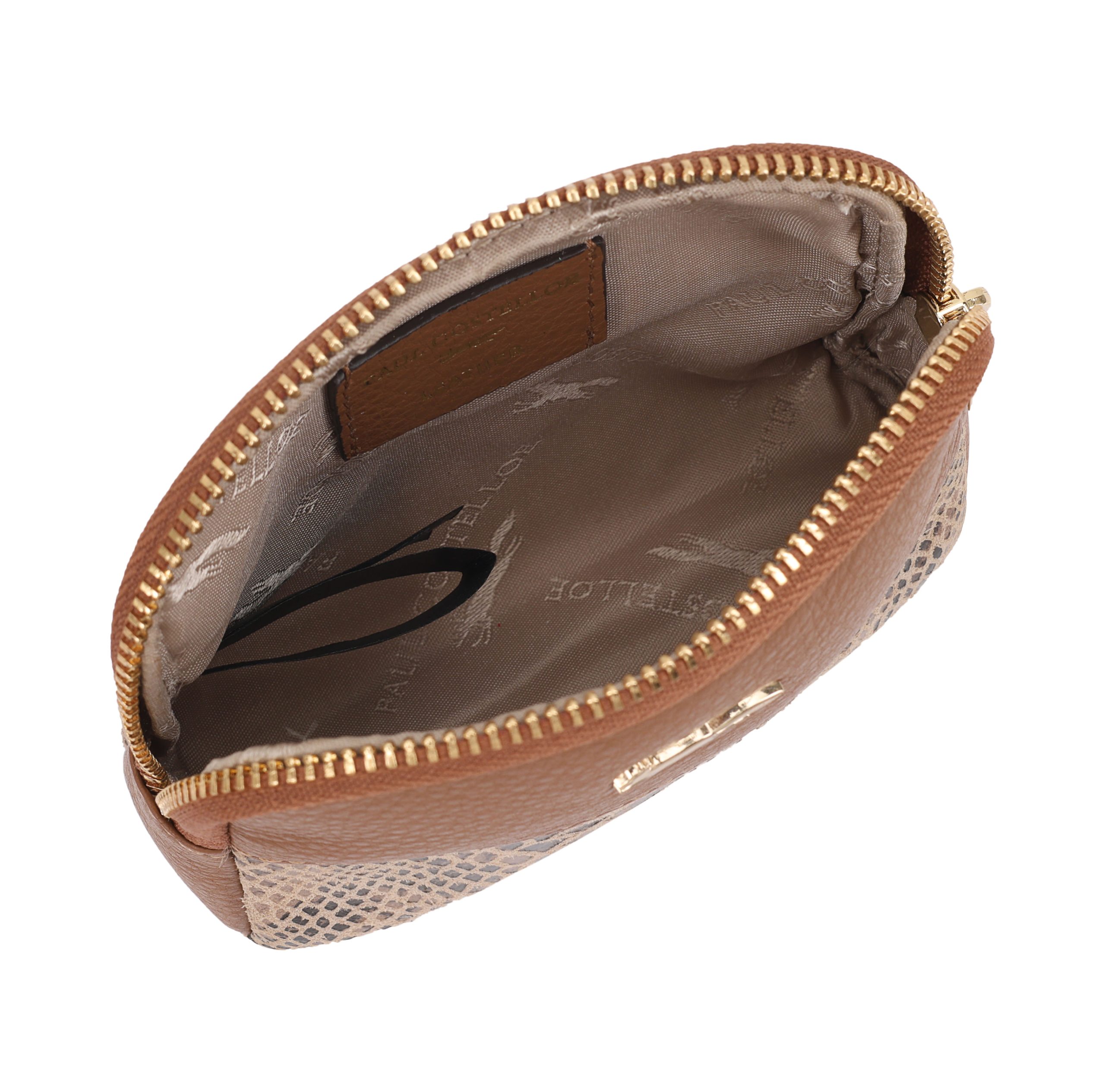 Paul Costelloe Clementine Makeup Pouch – the perfect blend of elegance and functionality for the modern woman on the go. This chic makeup pouch is designed to keep your beauty essentials and coins organized and protected in style. Crafted from high quality soft leather with the signature Paul Costelloe metal logo, adding a touch of luxury to your daily routine. D:3cm W:12.5cm H:10cm