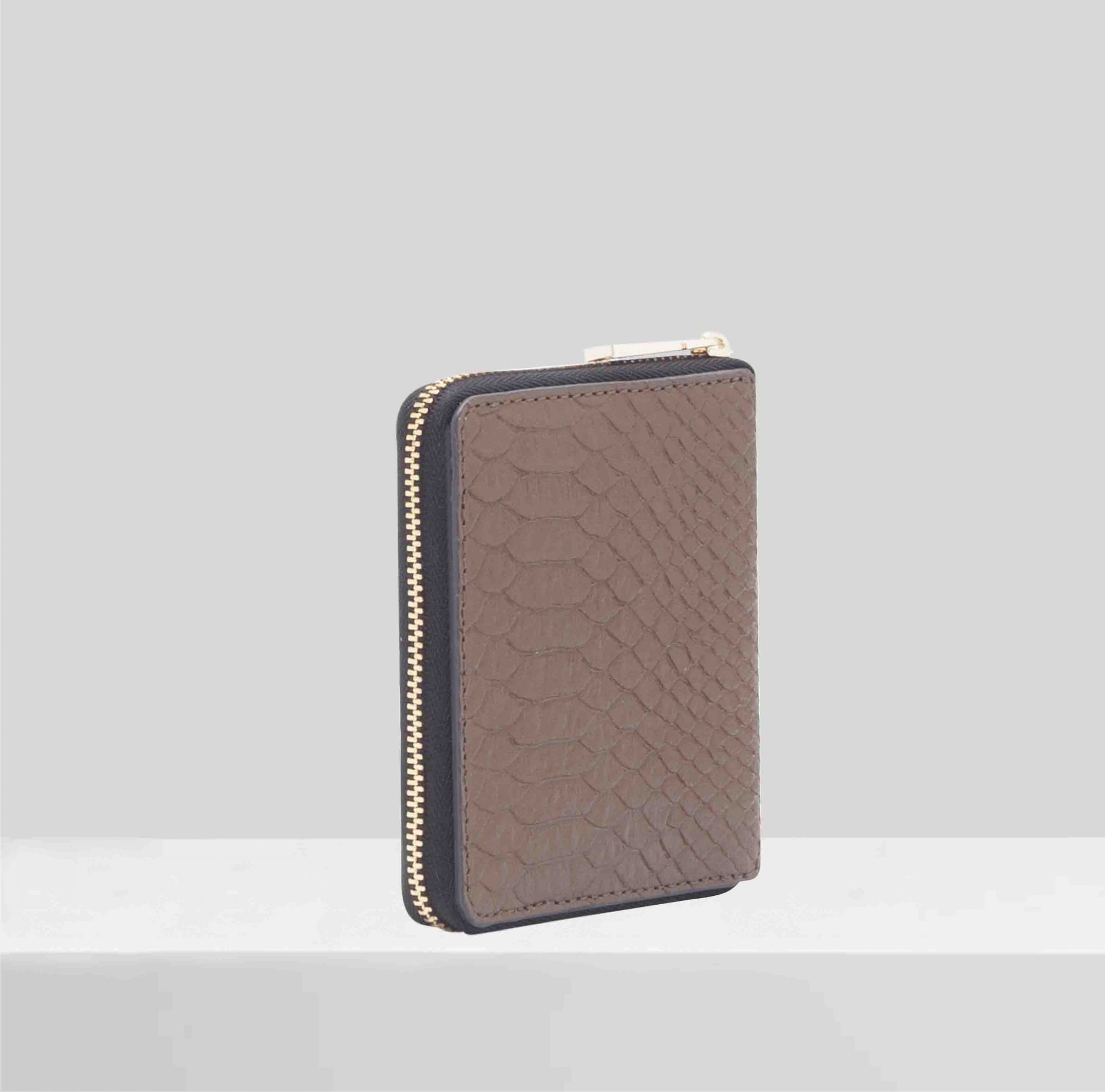 Paul Costelloe offers yet another icon. Defined by the Anaconda embossed leather, the Madonna purse ideal fusion of cards, coin and note sections within its compact size.
