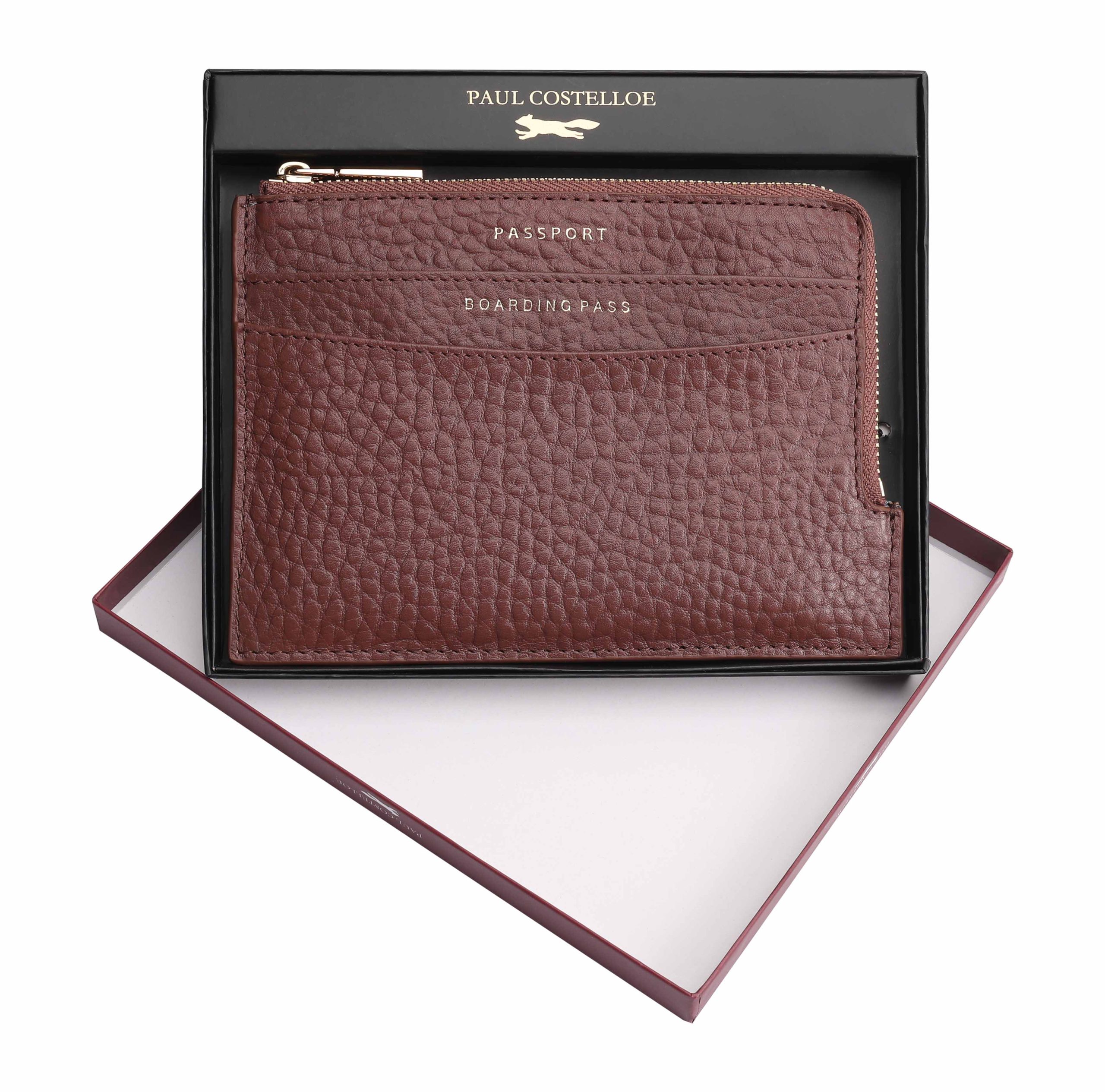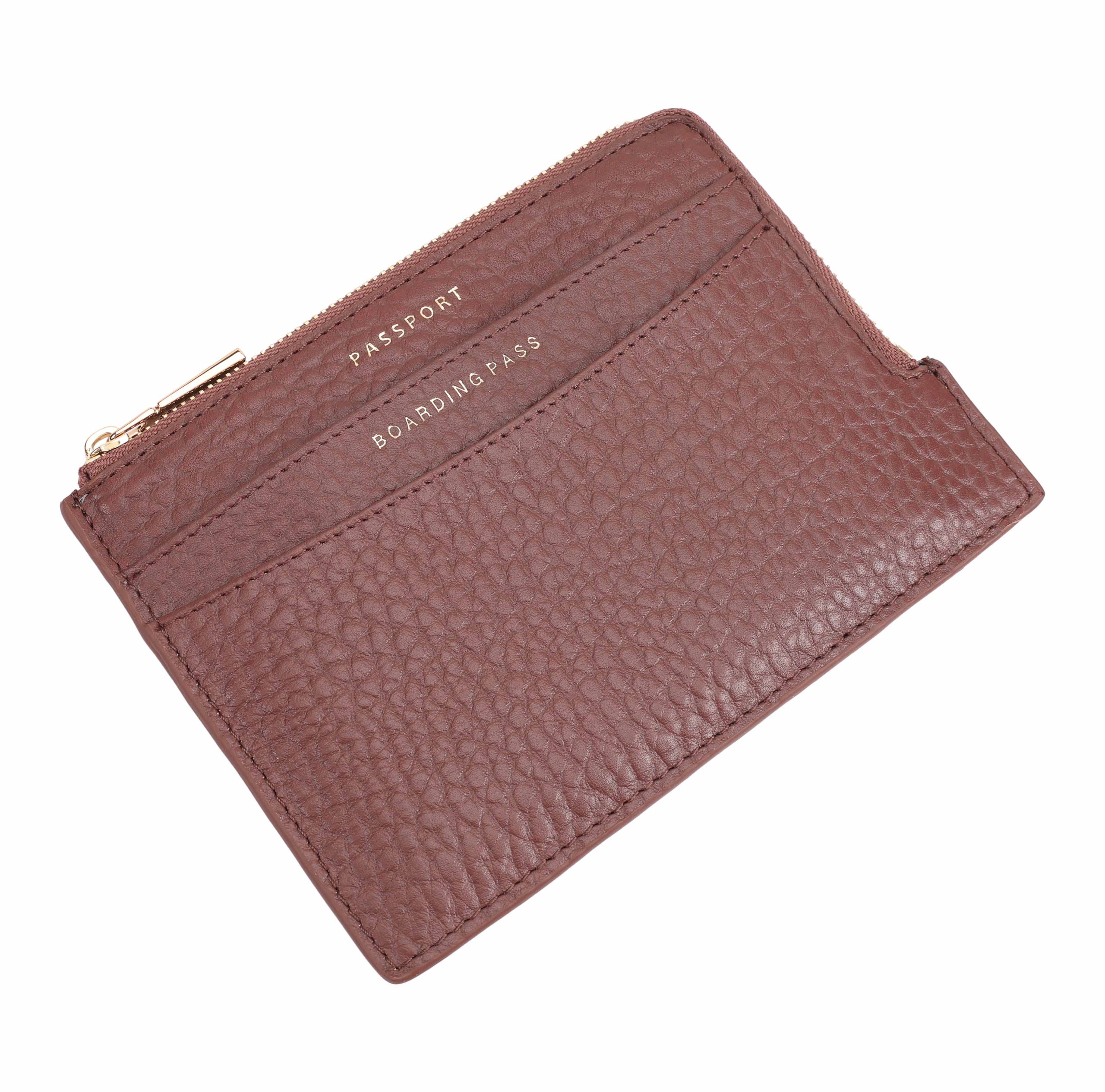 This handy leather organizer, crafted from premium soft pebbled leather, is designed to keep your travel essentials in order. It features dedicated compartments for your passport, cards, and cash, along with a slot for boarding passes or tickets. The central zipped section offers secure storage for small essentials, making it an invaluable travel companion. D:1cm W:17cm H:12cm