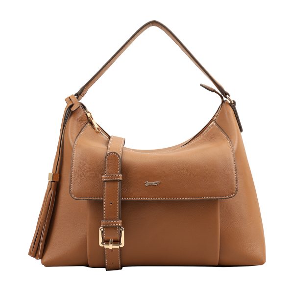 - 60 % Off £220.00Original price was: £220.00.£89.00Current price is: £89.00.This chic leather shoulder bag features a top zip closure and a spacious interior with slip and zipped pockets on the sides for easy organization. A stylish flapped pocket on the front adds both functionality and flair, complemented by a decorative tassel. Crafted from soft grainy leather, it includes an additional adjustable long shoulder strap and a wider, padded short strap for comfortable and convenient carrying. D: 13cm, W: 34.5cm, H: 26cm