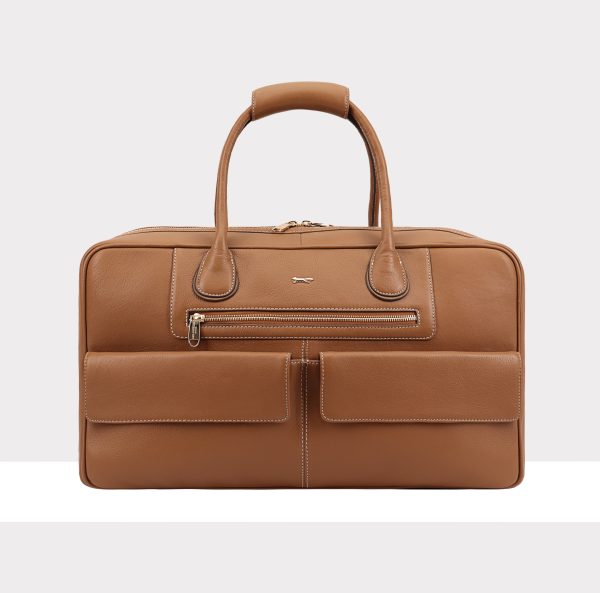- 56 % Off £275.00Original price was: £275.00.£120.00Current price is: £120.00.This stylish leather weekend bag features a convenient top zip and two flapped slip pockets on the front for easy access to essentials. Inside, it boasts a spacious compartment with a secure zipped pocket and an additional slip pocket for organized storage. The handles are designed with soft grippers to ensure comfort during travel, making it the perfect blend of practicality and elegance for any weekend getaway.