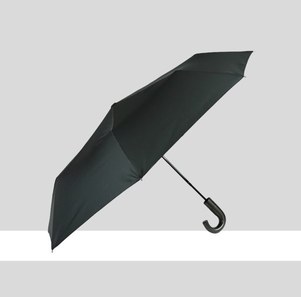 This convenient, easy-to-carry manual folding umbrella boasts a smooth leatherette crook handle for a classic look, a steel frame• 100% Polyester