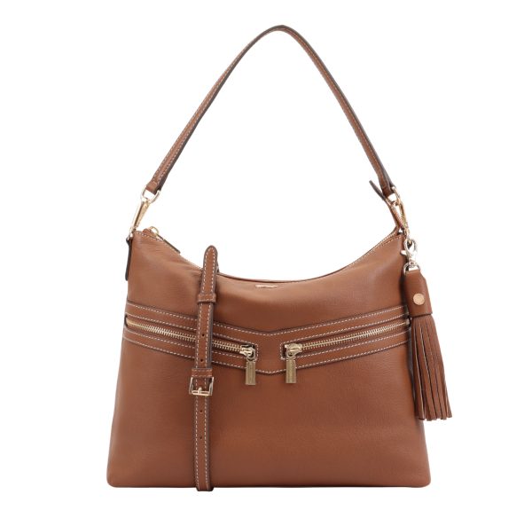- 72 % Off £250.00Original price was: £250.00.£69.00Current price is: £69.00.AZORES is a compact multiway handbag. This handbag can be carried as a grab or a shoulder bag / crossbody. Accented with gold metal zips on its front, this stylish bag offers you secure pockets to keep your valuables safe. D:10cm W:29cm H:26cm