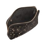 A refined rectangular pouch crafted from premium hair-on leather, offering a clean, spacious interior to hold all essentials, complete with an internal zipped pocket for extra organization. Accented with a sleek metal logo bar on the front, this elegant pouch is ideal for travel, combining sophisticated style with practical functionality.