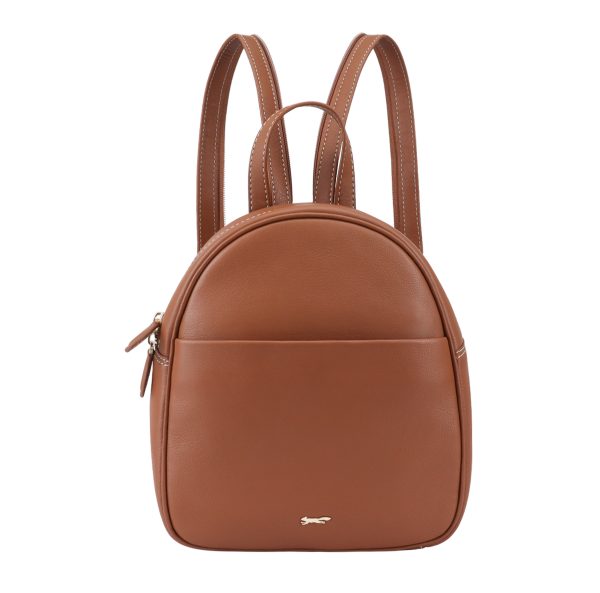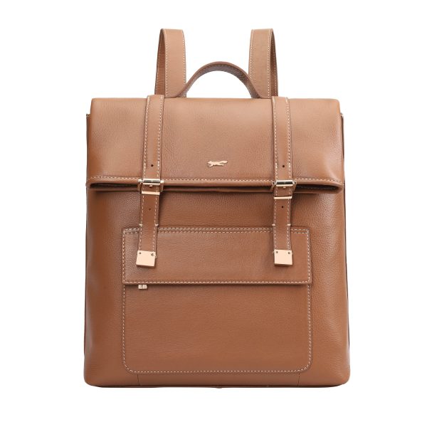 Its spacious central compartment features slip and zipped pockets on either side for organized storage, while a flapped slip pocket on the front and an additional pocket on the flap provide extra convenience. Designed for comfort and practicality, it comes with adjustable leather back straps and a sturdy carry handle. Finished with an elegant brand logo pin on the centre front, this backpack is the perfect blend of sophistication and practicality. D:10.5cm W:30cm H:36cm