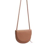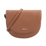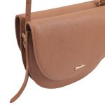 Introducing a chic half-moon crossbody bag exuding sophistication with its stylish double flaps gracefully adorning each side. Its sleek silhouette is accentuated by an elegant metal logo adorning the front, adding a touch of refinement to any ensemble. Designed for versatility, it features an adjustable shoulder strap ensuring comfort and convenience without compromising on style. D:6cm W:19cm H:15.5cm