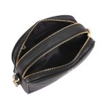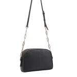Featuring twin zipped compartments for easy organization. The adjustable metal chain shoulder strap adds a touch of sophistication, while the brand logo pin on the front enhances its premium appeal. Inside, a slip pocket and a zipped pocket provide secure storage, making it a chic and functional choice for everyday use. D:6cm W:25cm H:16cm